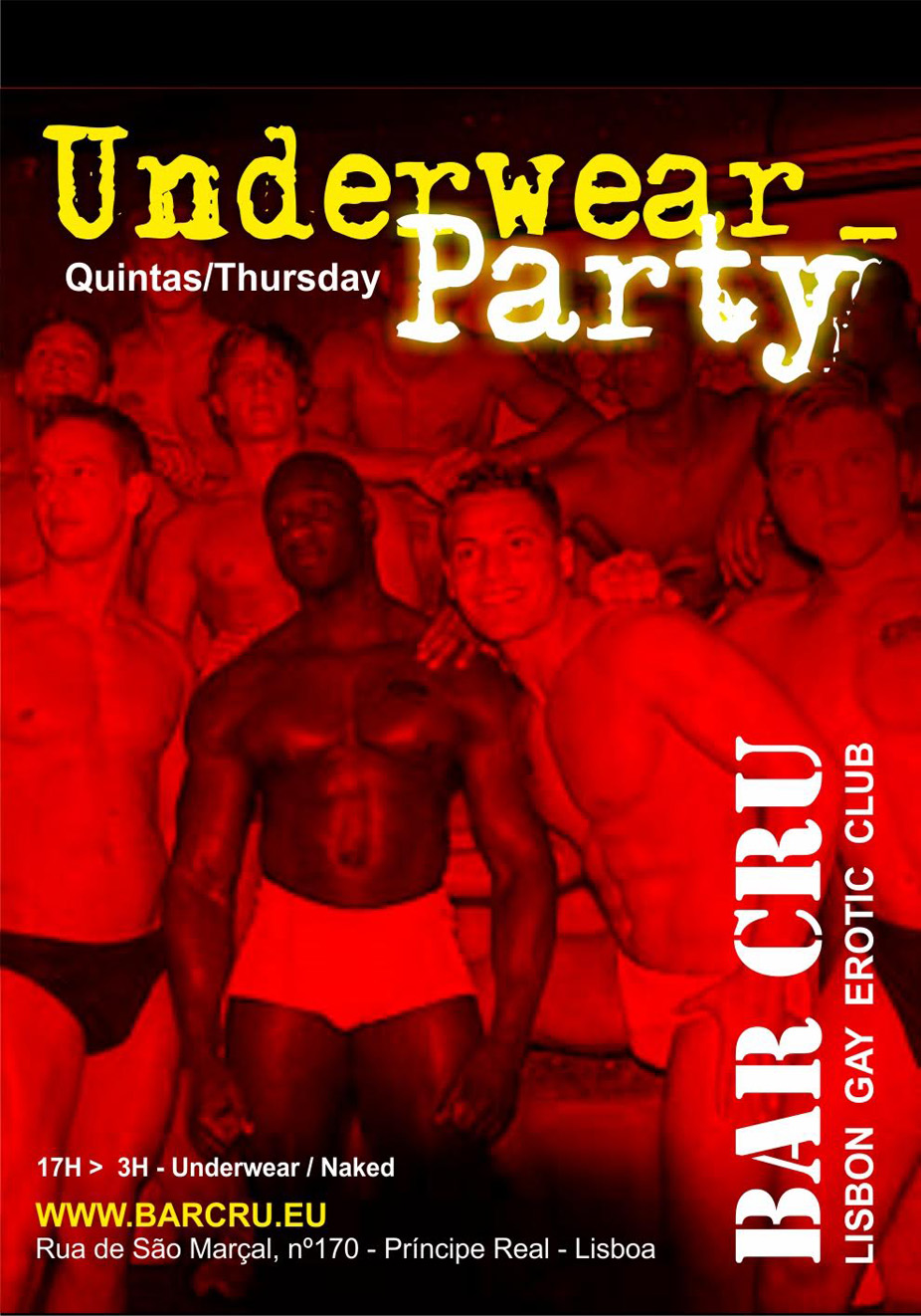 Ready to play? Join us at Bar Cru, Lisbon’s gay erotic club. Hot men. Sexy parties. Big fun.